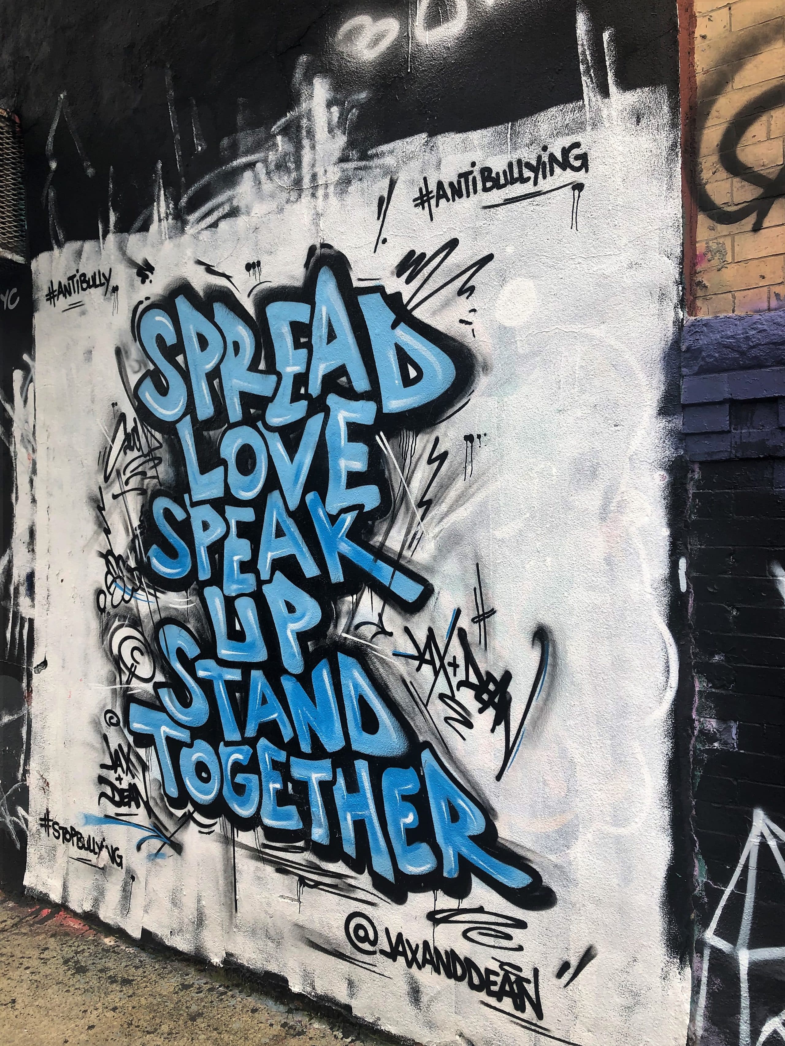 Street art can be expressed in a number of ways as seen from the image gallery above and it aims to convey a message to its viewers. For example, stopping violence and encouraging love, racial diversity statements as all are equal, animal conservation and priority (as can be seen by the bee above).