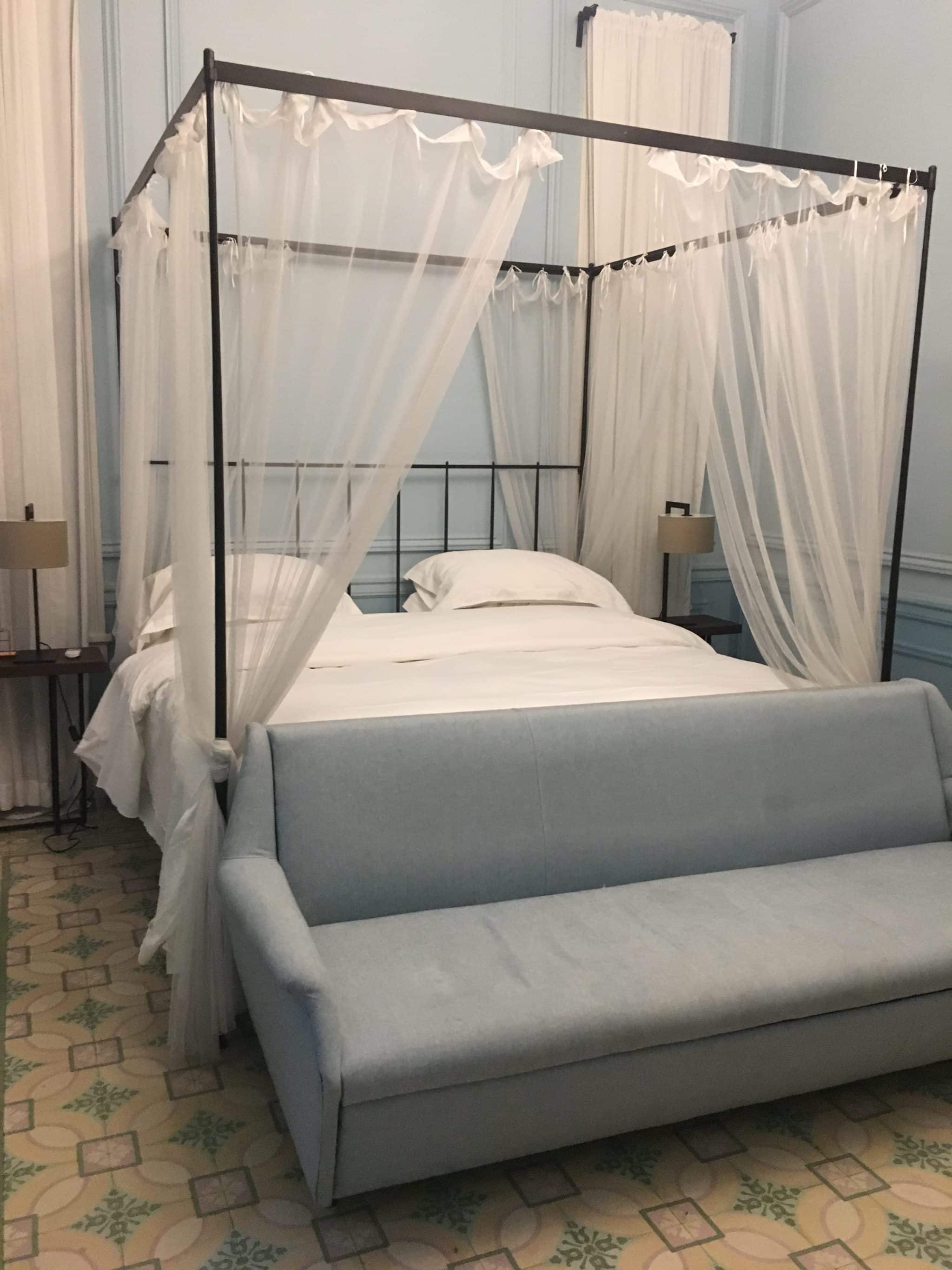 Come take a look through the photo tour where crisp clean lines meet contemporary décor in this beautifully renovated project. A fuss free 4 poster bed with a linen drapes and dusky blues and rustic lemony yellows. The style of the Havana from the 1950s is bought alive with the contemporary twists. The dark wood furniture has been hand-crafted in Italy to provide that authentic charm blending seamlessly with the other interiors.