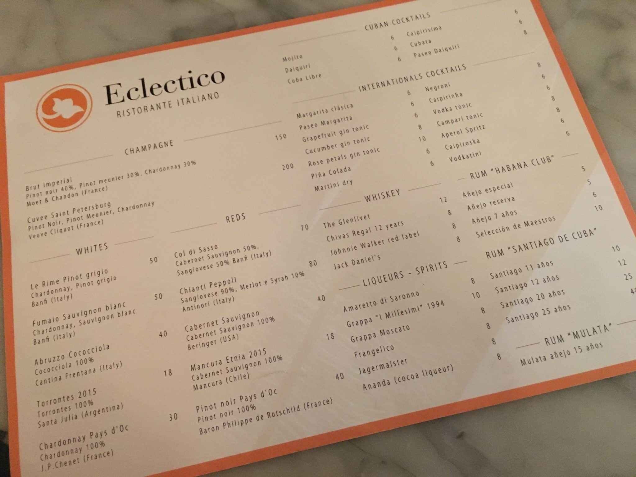 ECLECTICO AT PASEO 206: ITALIAN & CUBAN FLAVOURS IN HAVANA