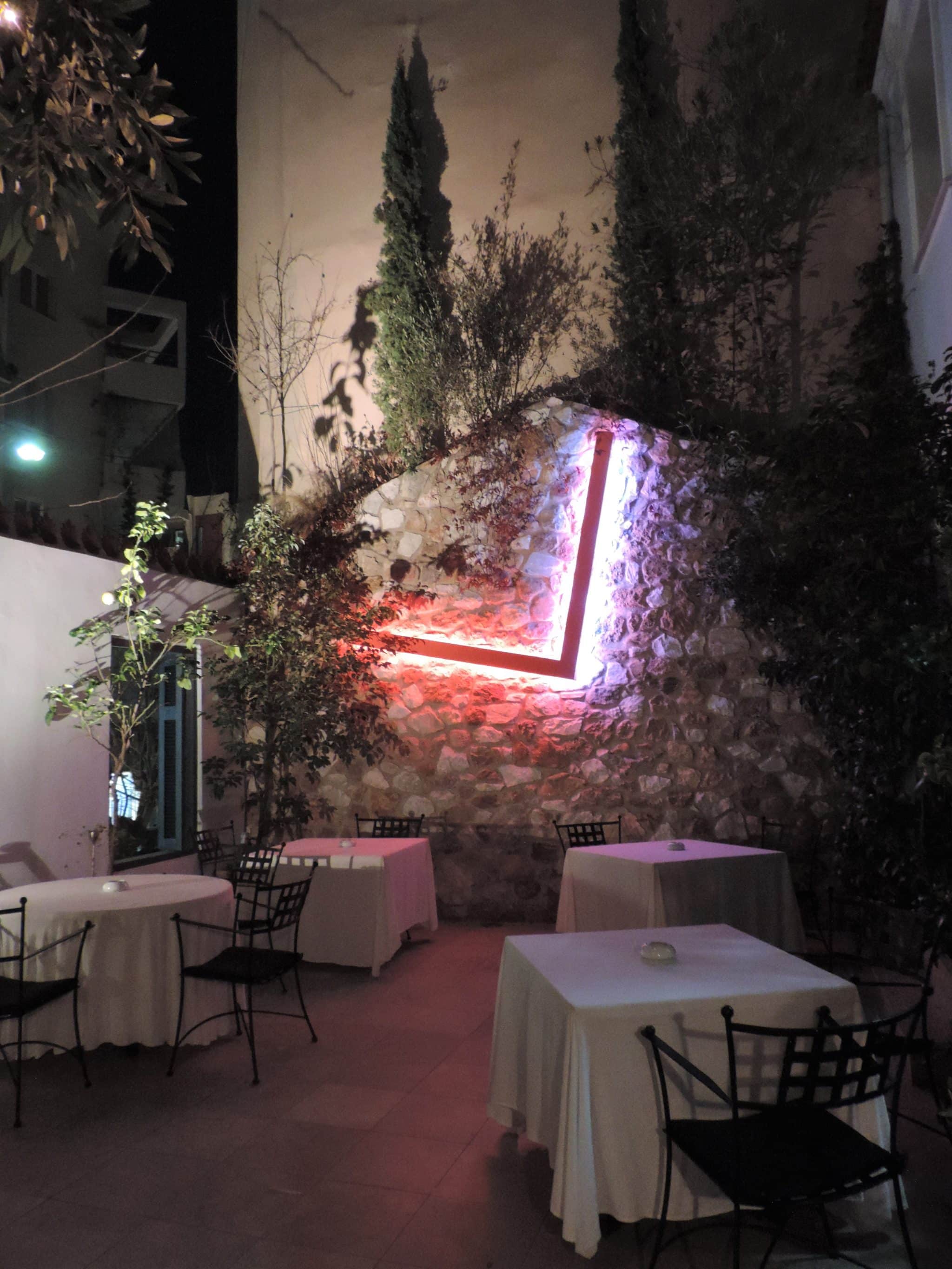 Elegant dining at 2 Michelin Star Spondi in Athens. Outdoor Terrace