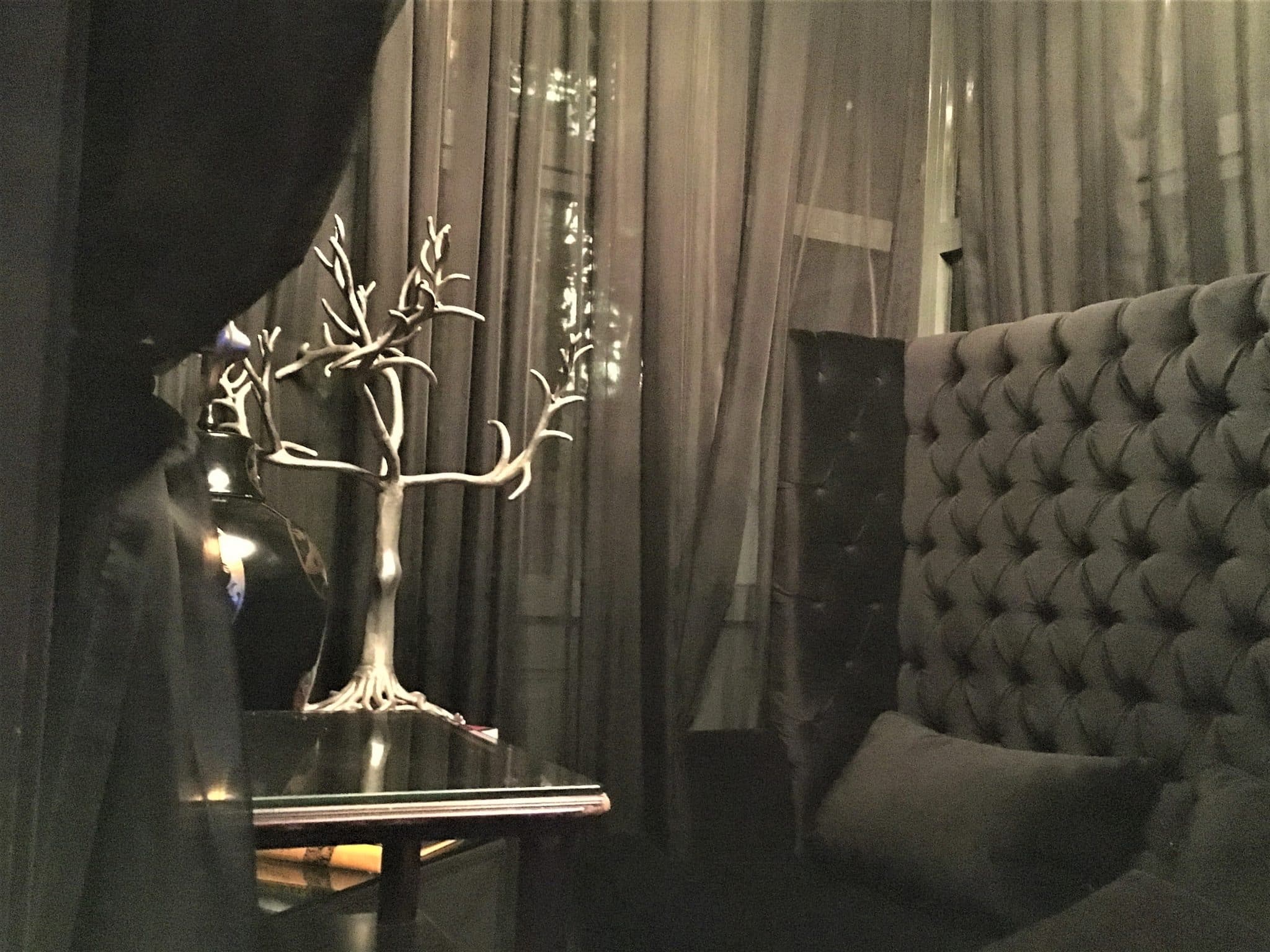 Dr C and I were shown to our table by the maître d with a choice of Kir Royale or champagne being poured and pressed into our hands almost immediately. We were sat on a beautiful round table and upholstered sofa style wall seat, adorned by the gleam of light from a large crystal chandelier hanging above us. The table was laid with shiny silverware and a large decadent gold plate, which was removed on presentation of our appetisers.