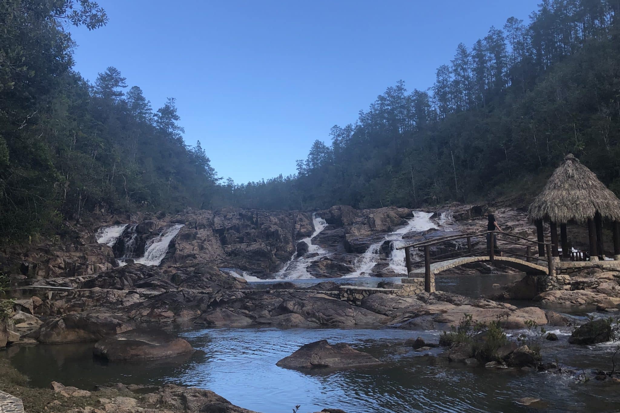 Think remote, pine tree lined dust tracks with wooden cabanas, the sound of gushing water from the waterfall beneath you, technicolour flowers glistening like jewels in the landscape and occasional birdsong from the odd flying friend that sweeps passed your path.