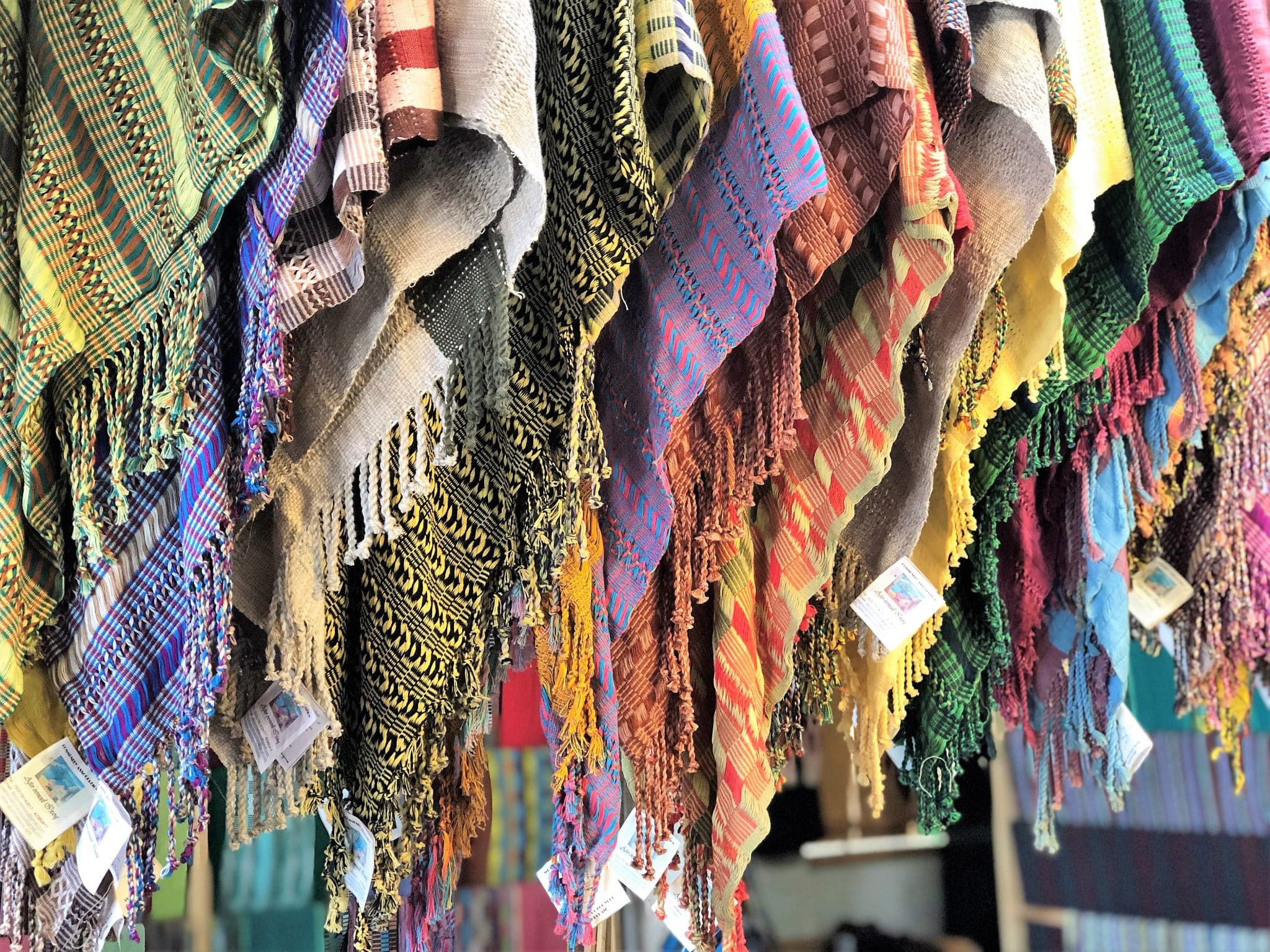 Their textiles are available to buy from scarves, shawls, clothing, purses to rugs, table cloths and the like.