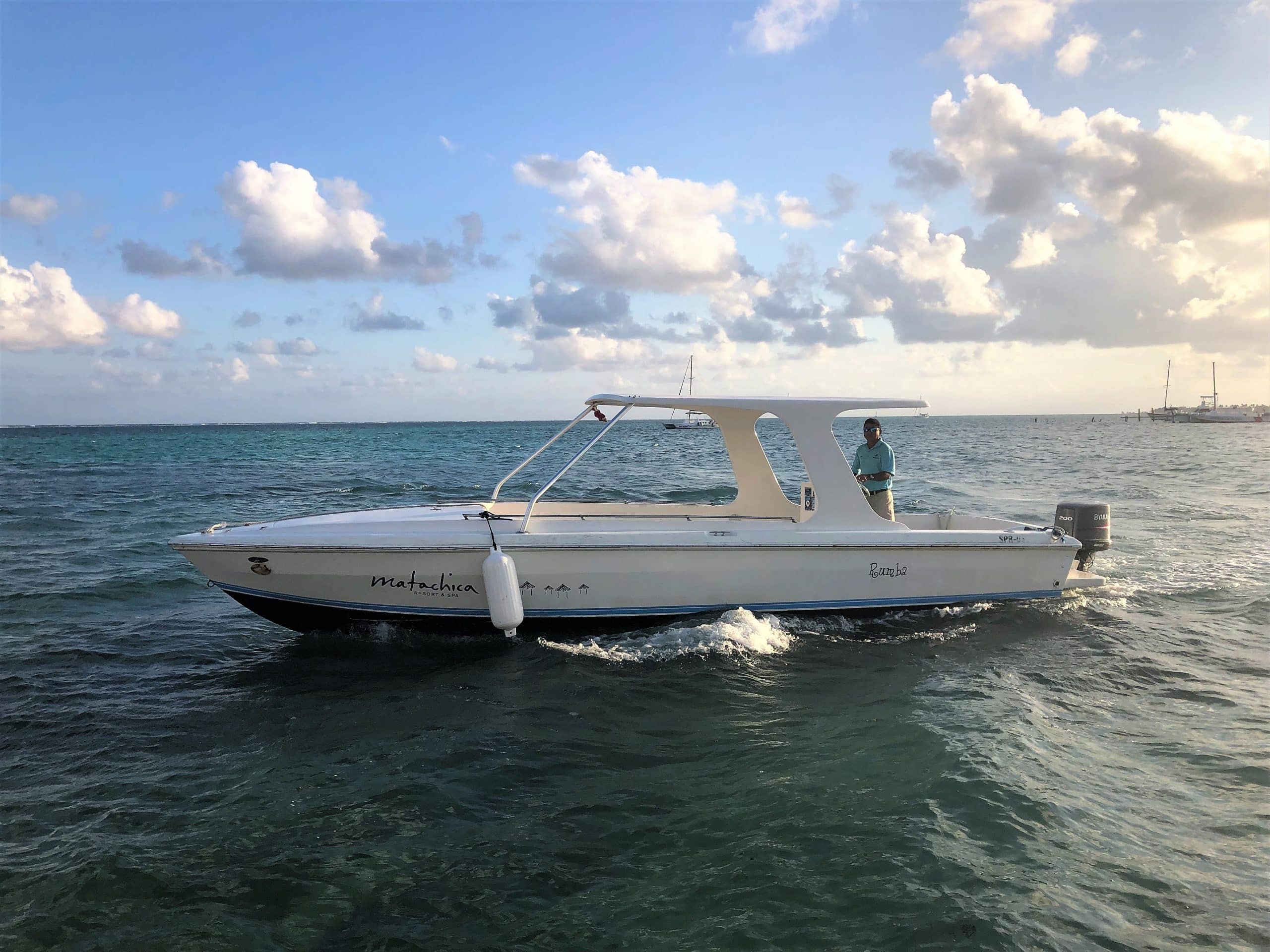After a short 20 minute flight from San Ignacio, we were met by a Matachica transport member who quickly got us settled onto a golf buggy to the port where the resorts speed boat was waiting to take us to the resort. En route to our abode for a few nights, we were asked our cocktail preference so they would be ready to greet us on arrival.