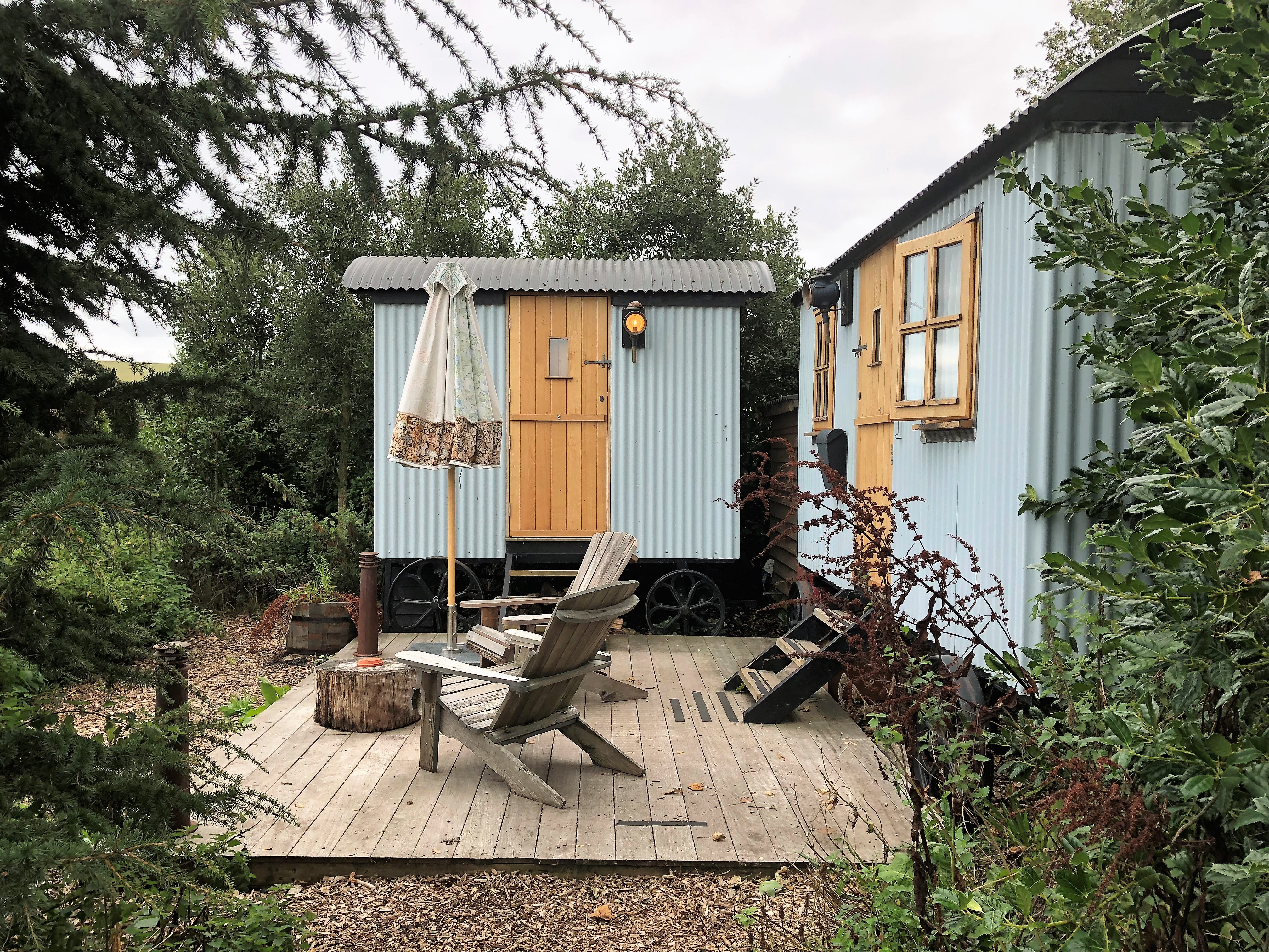 These are two shepherd huts, Harry’s Hut and The Pig Hut, which are nestled at the bottom of the garden, with stunning sea views of Harry’s Rock. They both comprise of two separate huts, one which is a double bedroom and the other is the bathroom complete with free standing bath. Both huts are joined by a decked area joining the two rooms. These are quite small and bijoux so keep luggage to a minimum!