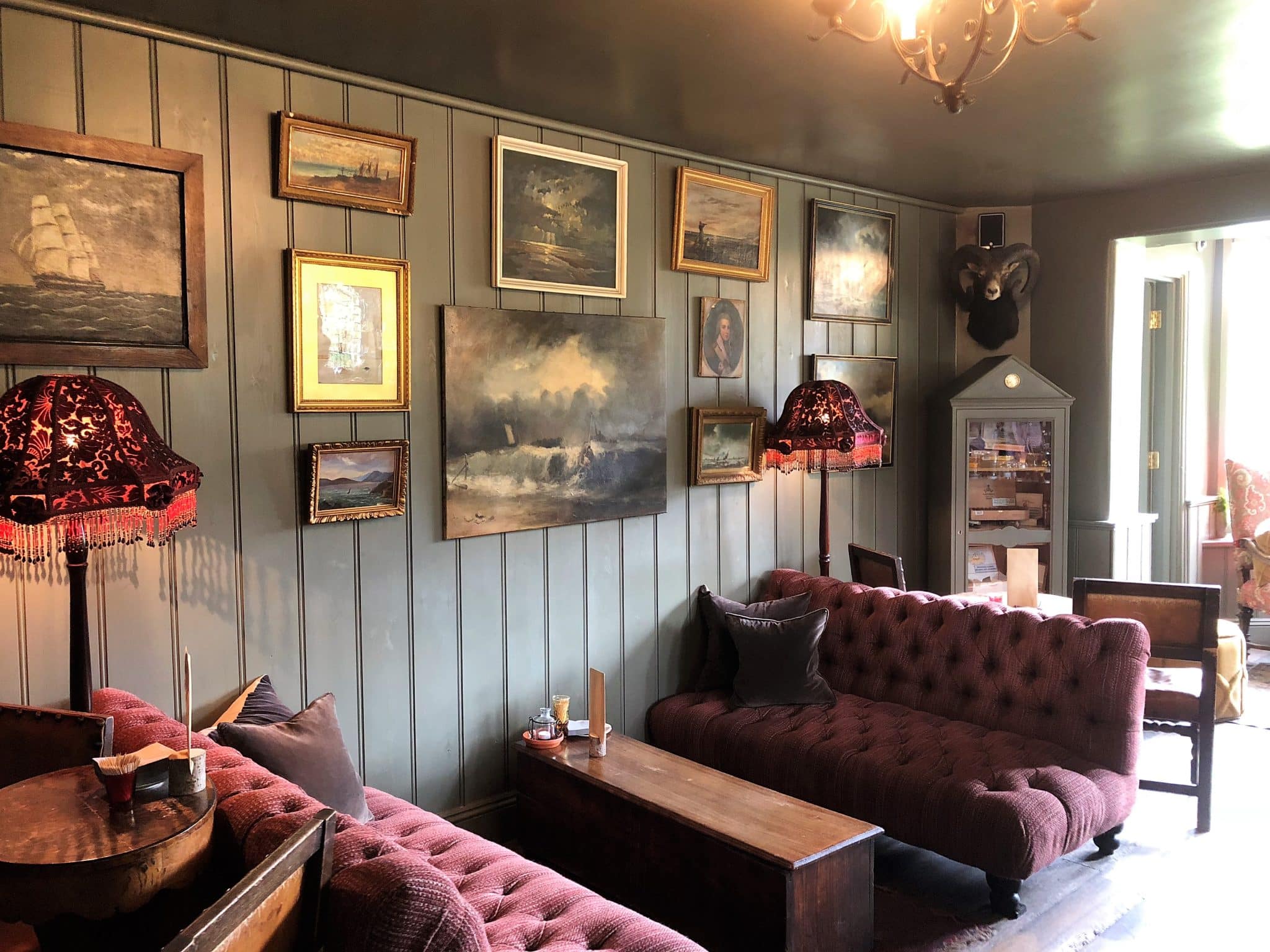 The snug is located towards the front of the property and is a place for hotel residents to enjoy a quiet drink, read and relax. Fires, deep sofas, armchairs fill the room with the odd stuffed animal display.