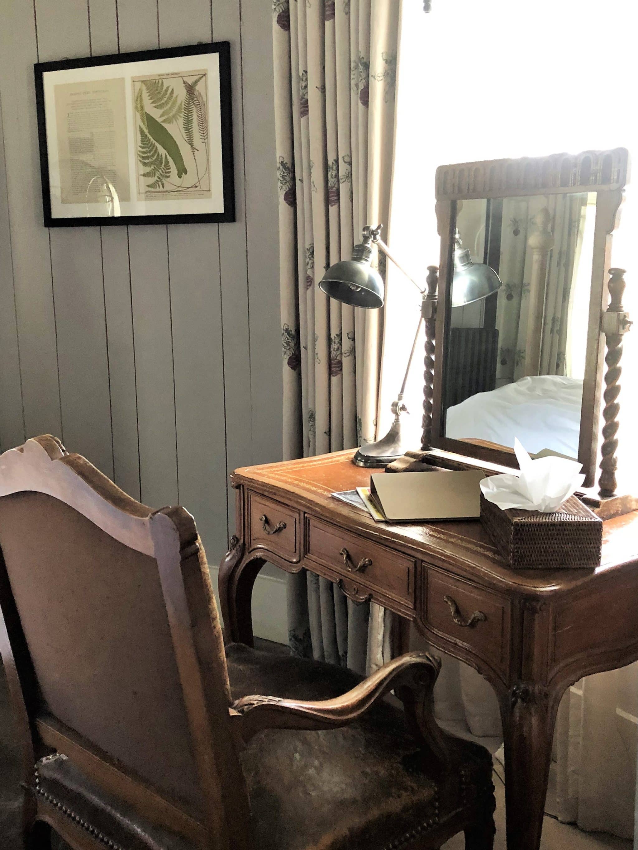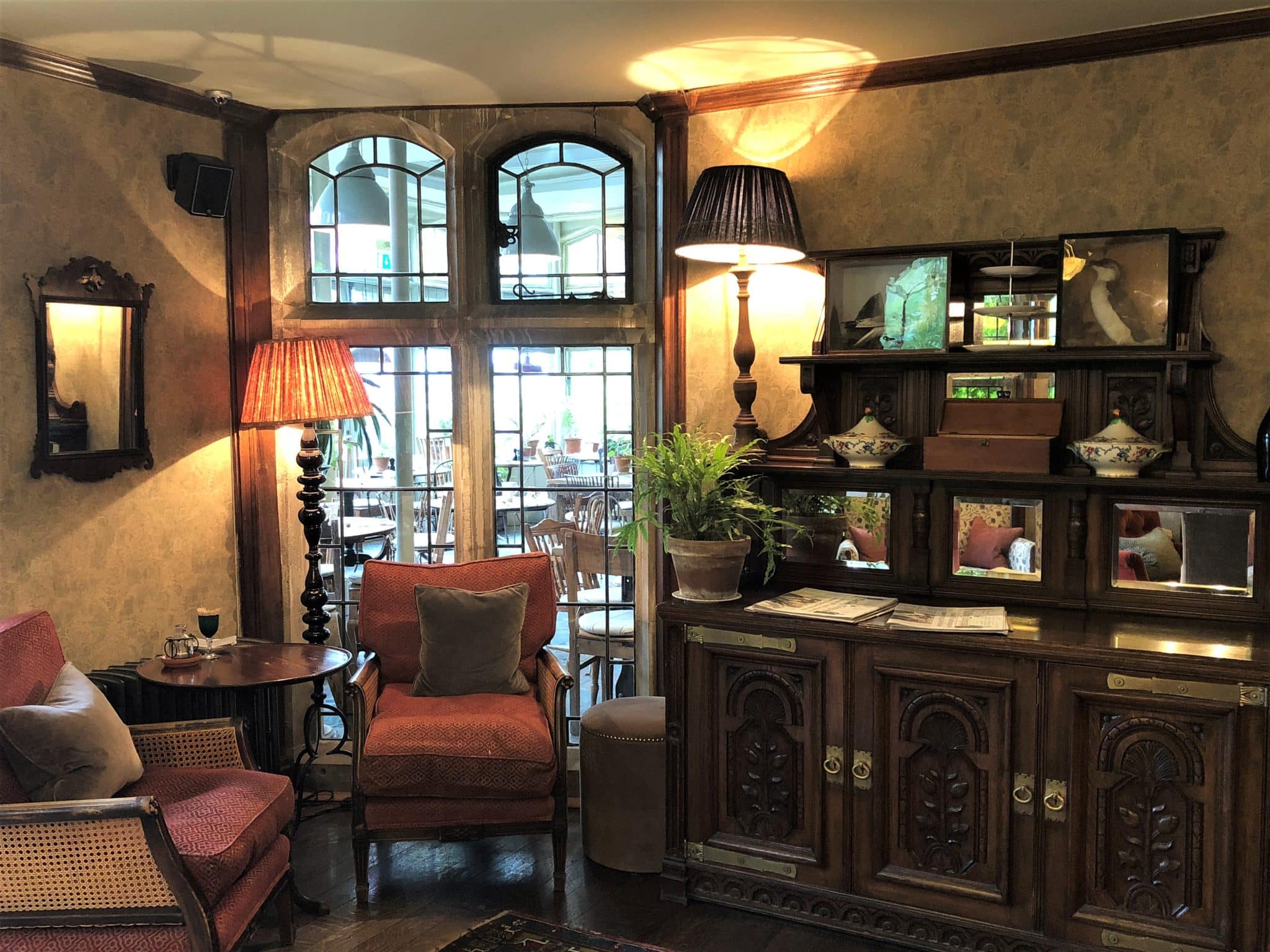 We arrived at the hotel a little prior to our lunch reservation at the restaurant and were welcomed into the beautifully decorated lobby, with carefully arranged sofas around tables in varying denominations and a stunning dresser upon, which stood a very inviting cake. I instantly noticed a fireplace, which made me think of this space as perfect for reading the Sunday papers and snoozing off post lunch with the flickering from the roaring fire