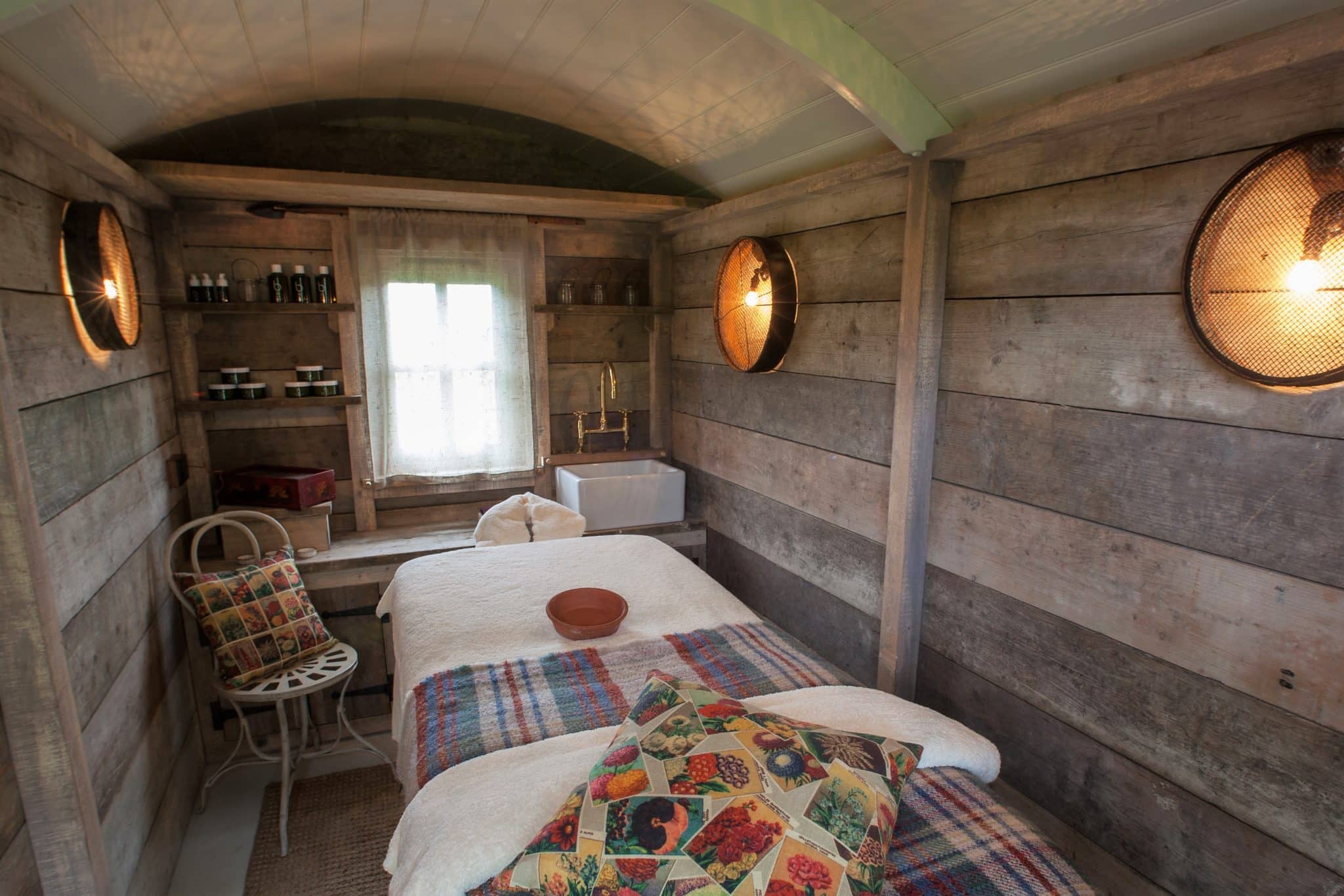 Although The Pig on the Beach don’t have a proper Spa, they do have two very cute huts, which are equipped for treatments. They’re located half way down the garden area with sheep roaming freely and trimming the overgrown grass around them. Ideally treatments should be booked prior to your stay to avoid disappointment.