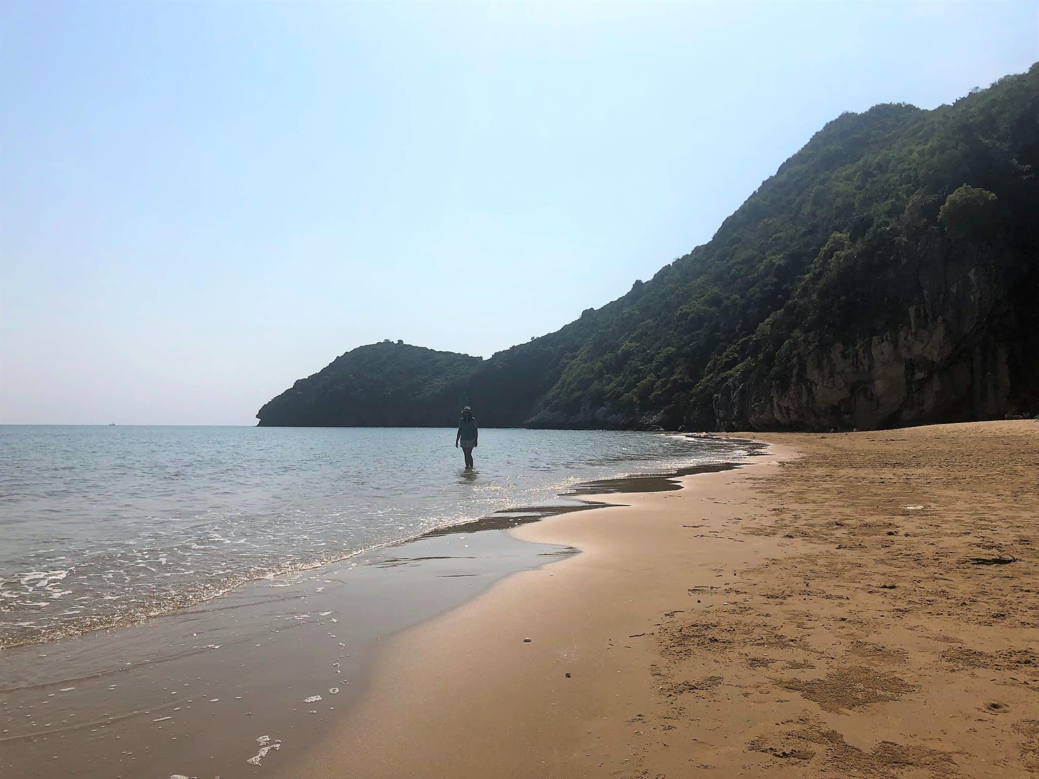 The beach is a long stretch with views of limestone mountains as well as miles of pure white powdery sand. Beware if you plan to swim as there are a huge amount of jellyfish in the sea and washed upon the beach.