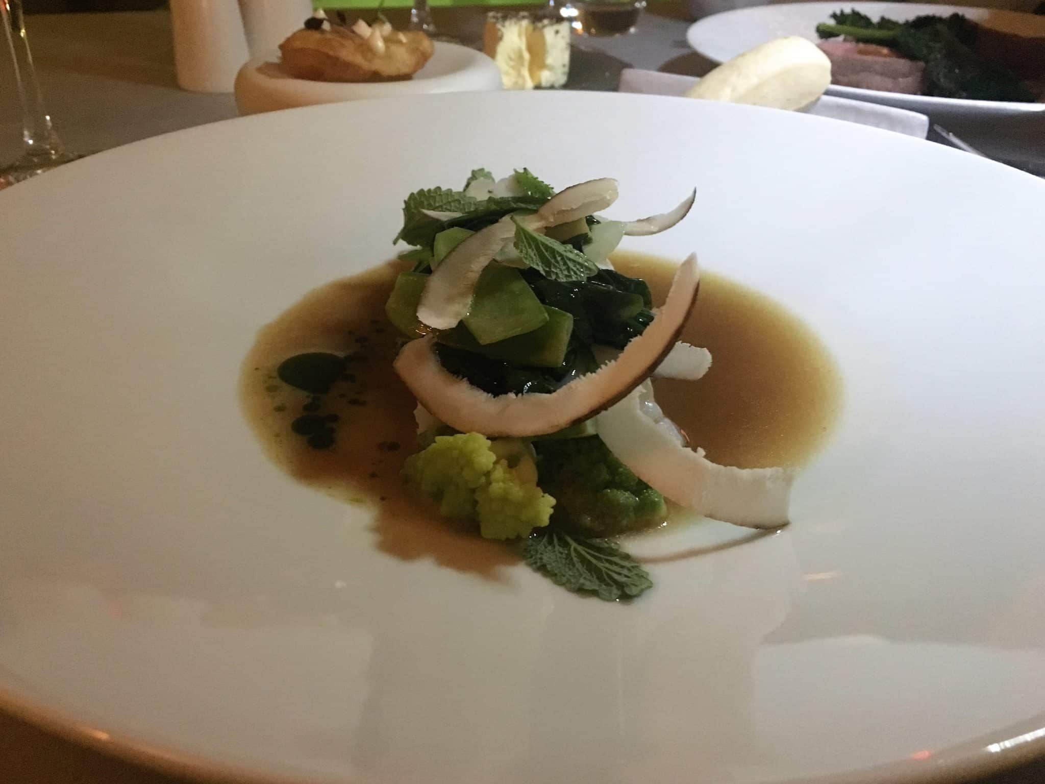 We skipped on the starters and went straight for the mains. I chose the sea bass, which was cooked in butter with smooth cauliflower puree, coconut thins, pickled lemon and a mild madras curry consumé. It sounds like it shouldn’t work right? But as expected the fish was beautifully cooked and the other ingredients didn’t over power the subtle taste of the fish.