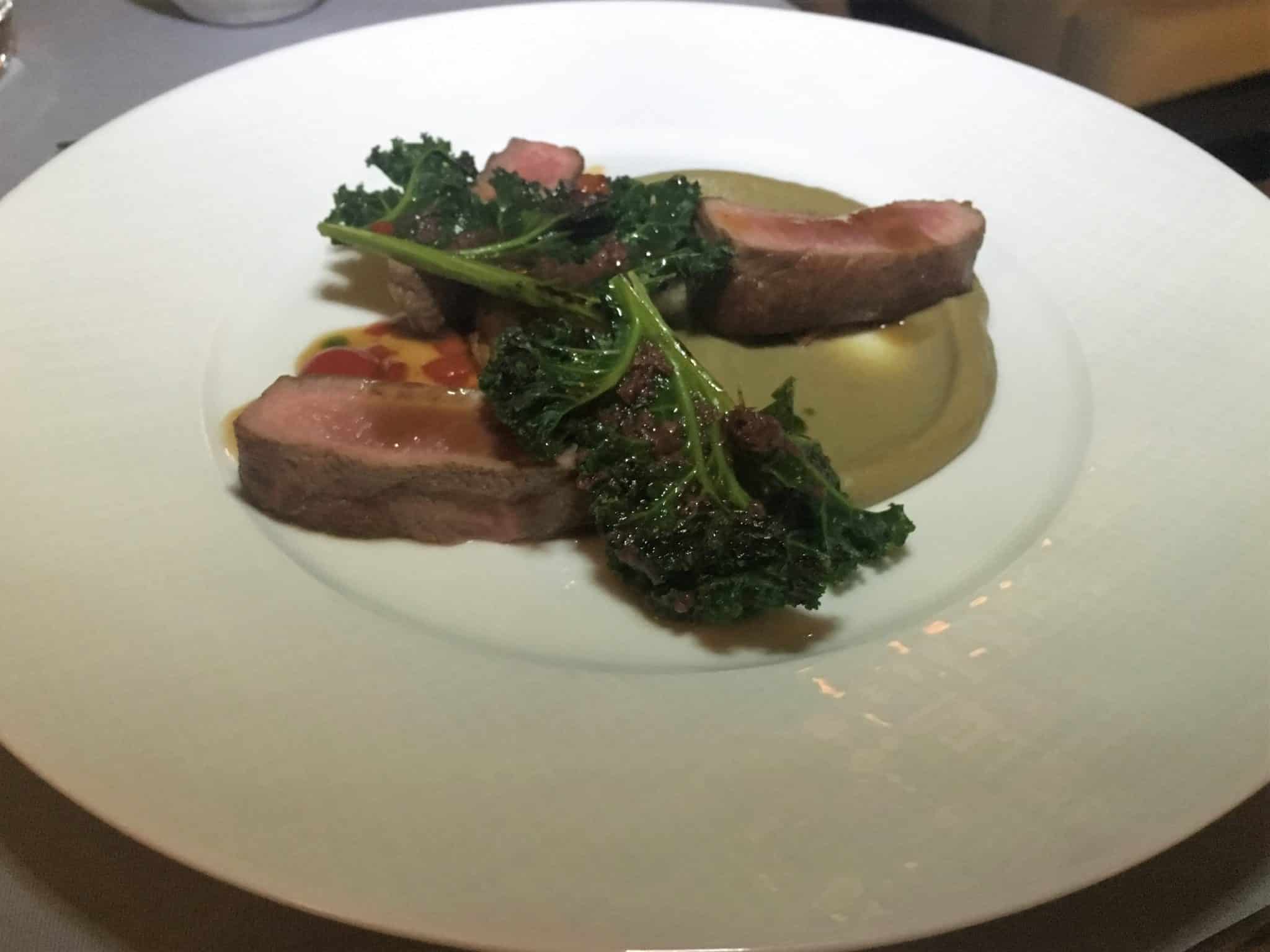 Dr C’s mains was lamb saddle with kale, artichokes, tomato confit and olives. The lamb was cooked medium rare just as it was requested and the confit provided just the right amount of liquid to stop any signs of the meat drying.