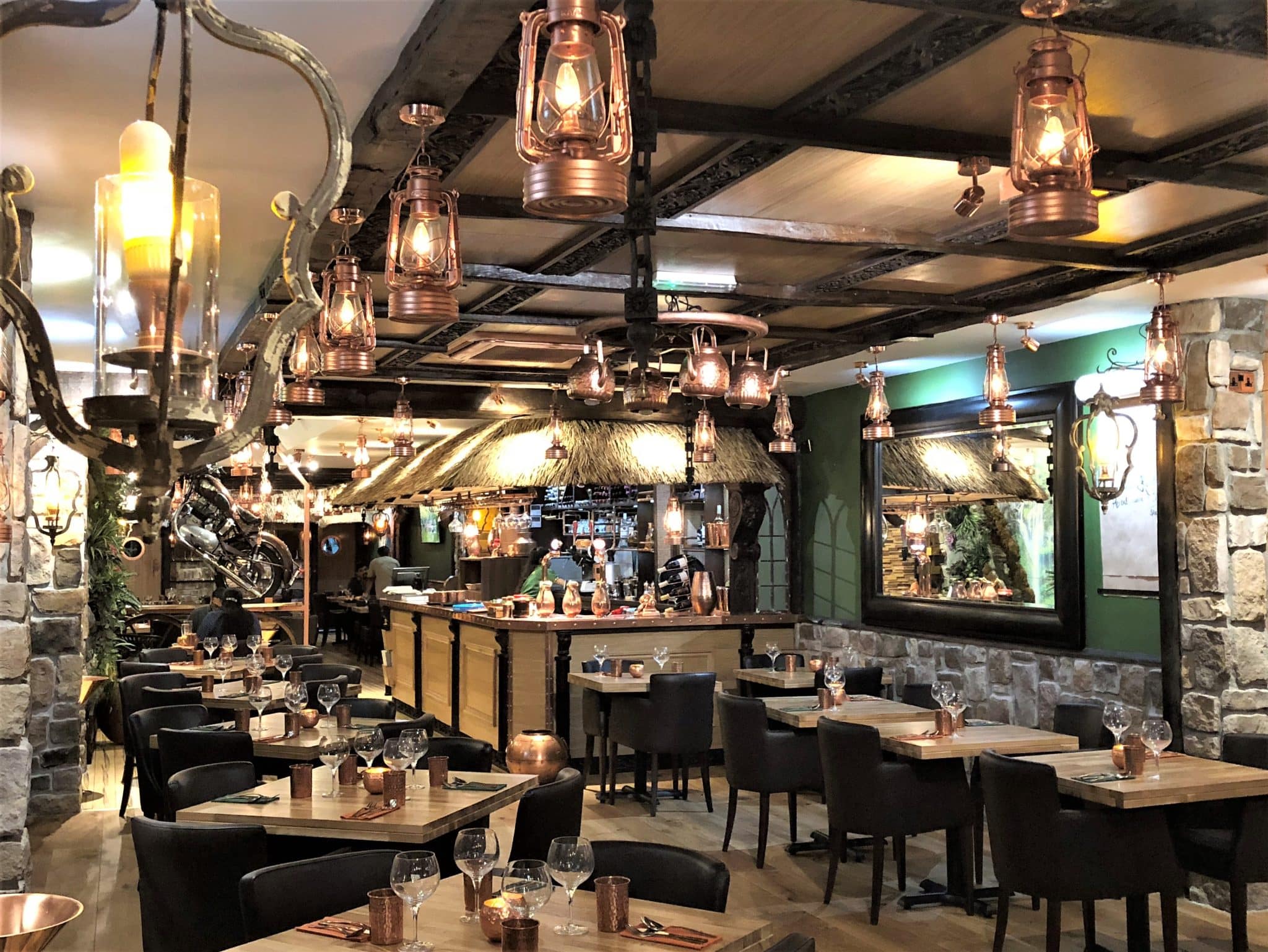 If you’ve been to Kayal, you will not be surprised to learn that Herb has been designed to resemble a traditional village house in Kerala, Think thatched bar area, copper lantern lights and crockery. There are occasional intricate crafted wall arts and there’s even a large wall sculpture of The last Supper as you enter on the right wall.